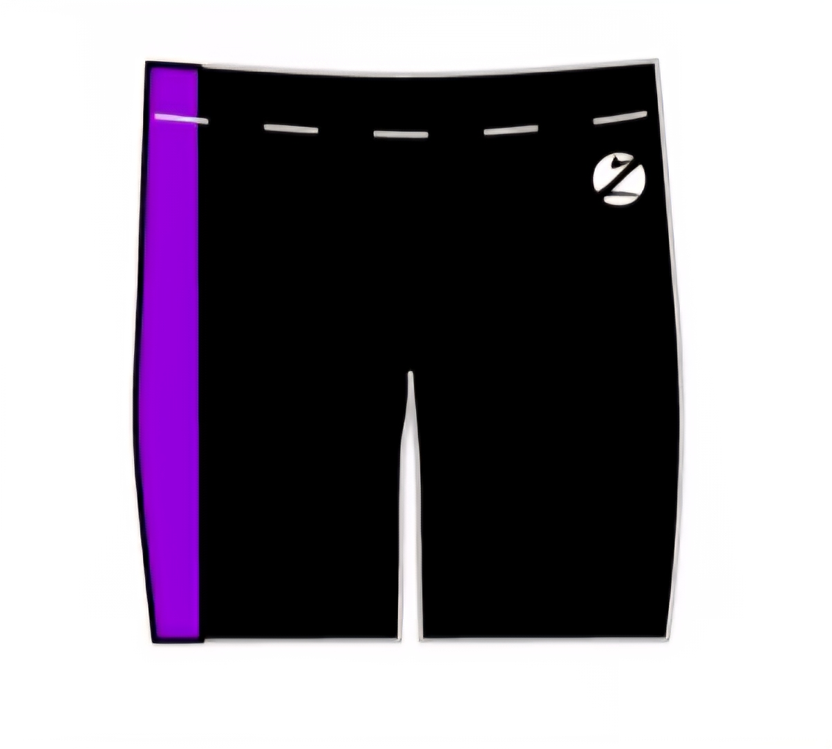 Pantalón corto con goma en la cintura. Negro con recorte violeta al lateral